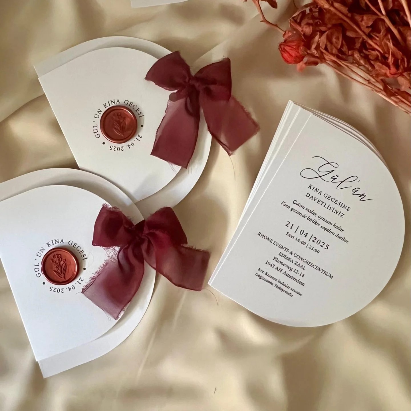 Bordo Renkli Kurdele Özel Kesim Dokulu Kağıt Mühürlü Kına Gecesi Davetiyesi