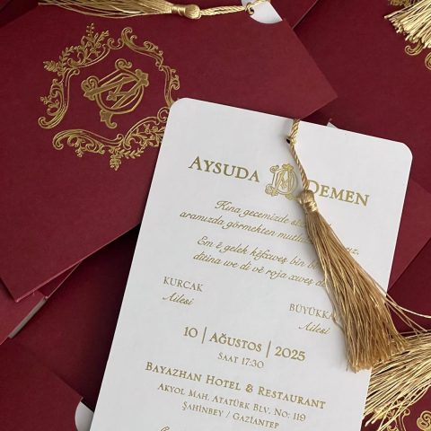 Geniş ürün yelpazemiz, kaliteli baskı tekniklerimiz ve lüks davetiye seçeneklerimizle, mutluluğunuzu sevdiklerinize en zarif şekilde duyuruyoruz. İzmir’den tüm dünyaya hızlı gönderim ve profesyonel tasarım desteğiyle, tarzınızı yansıtan o eşsiz parçayı hemen keşfedin