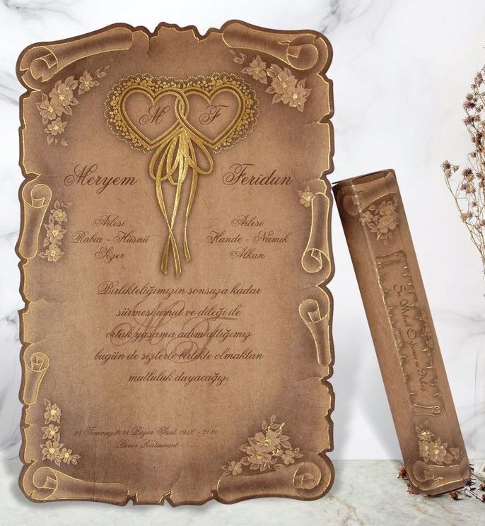 Kraft kağıt özel kesimli ferman şeklinde kenarları yaldız desenli olup üzerinde ferman şeklini andıracak tasarım yapılmıştır. rulo şeklinde katlamalıdır