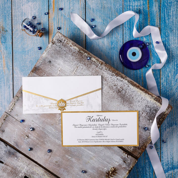 Gold Renkli Kenarlıklı Zarflı Tasarımlı Sünnet Davetiye 30312