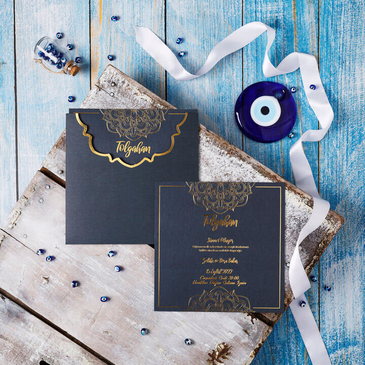 Koyu Lacivert Yaldız Baskılı Kaliteli Sünnet Davetiye 30321