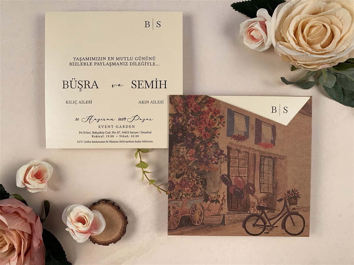 Kraft Kağıt Zarflı Üzeri Retro Zemin Baskılı Davetiye 52510