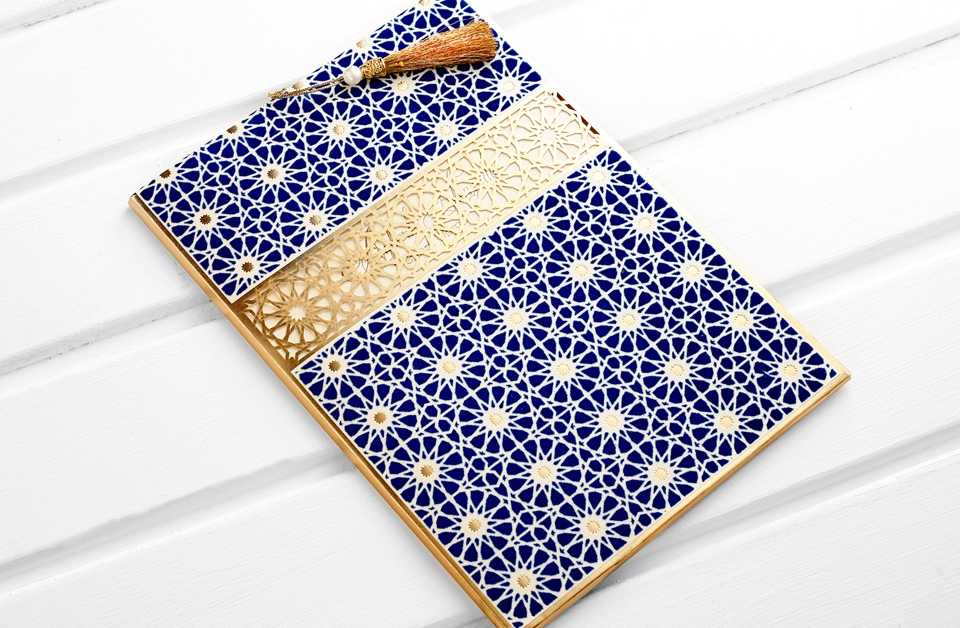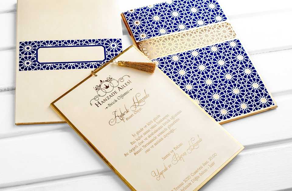 Bilgilerin yazıldığı kağıt sıvamalı kalın olup üzerinde altın yaldız baskısı vardır. dış zarf tasarımı ise yine desenli ve yaldızlı olarak tasarlanmıştır