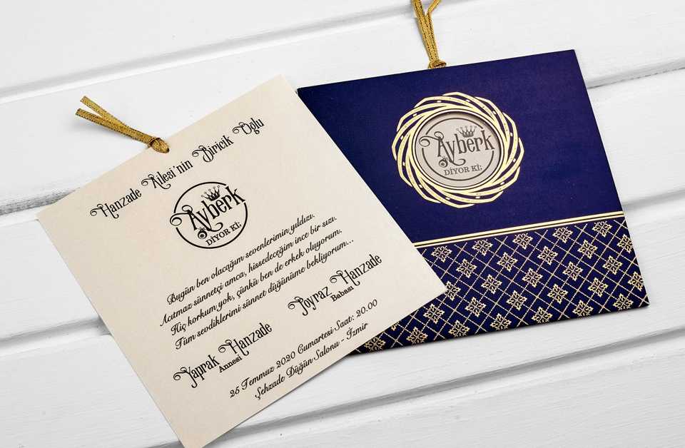 Lacivert Renkli Desenli Sünnet Davetiye 4968